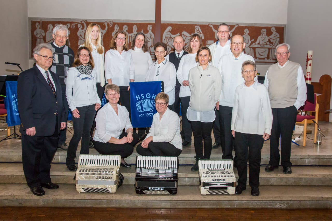 Am 04. Mai 1937 gründeten neun Musikfreunde aus Begeisterung für das gemeinsame Musizieren auf der Harmonika die Harmonika-Spielgruppe Hannover von 1937 - kurz HSGH von 1937 - . Hagen Stoy, dem langjährigen musikalischen Leiter, ist es im Laufe seiner Dirigententätigkeit von 1984 bis 2009 gelungen, das Akkordeonorchester auch durch den Einsatz elektronischer und anderer Instrumente sowie neuer Toneffekte zu einem beachtlichen Klangkörper zu formen. Von März 2009 bis Februar 2014 folgte als Dirigentin Svitlana Zinndorf. Von März 2014 bis September 2015 spielte die HSGH unter der Leitung von Waldemar Gies. Seit Oktober 2015 übt Rolf Künemund die musikalische Leitung des Orchesters aus. Die HSGH gehört zu den ältesten Akkordeonorchestern im Deutschen Harmonika-Verband. Neben der Durchführung eigener Konzerte wirkt das Orchester bei Veranstaltungen anderer Vereine oder Verbände mit. |